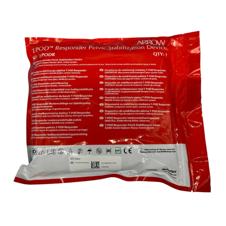 The Arrow® T-POD™ Pelvic Stabilization Device from Teleflex provides circumferential compression to the pelvis in patients with suspected pelvic fracture for pelvic stabilization, which may reduce blood loss and pain.