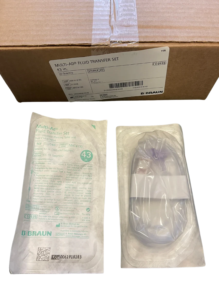 The B. Braun Multi-AD Fluid Transfer Set, MAT 4100 is a versatile and reliable solution for the safe and efficient transfer of IV additives. With its advanced design and user-friendly features, this fluid transfer set is a must-have for any healthcare professional.