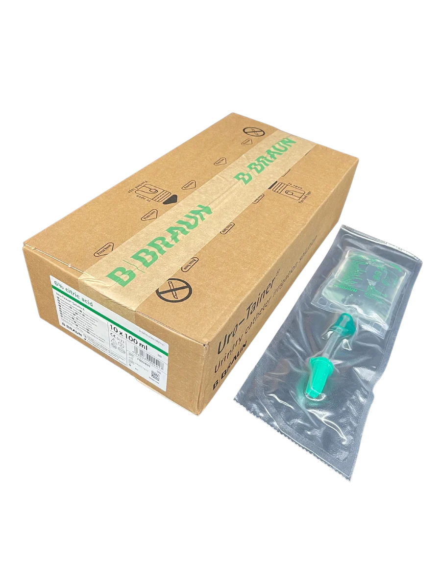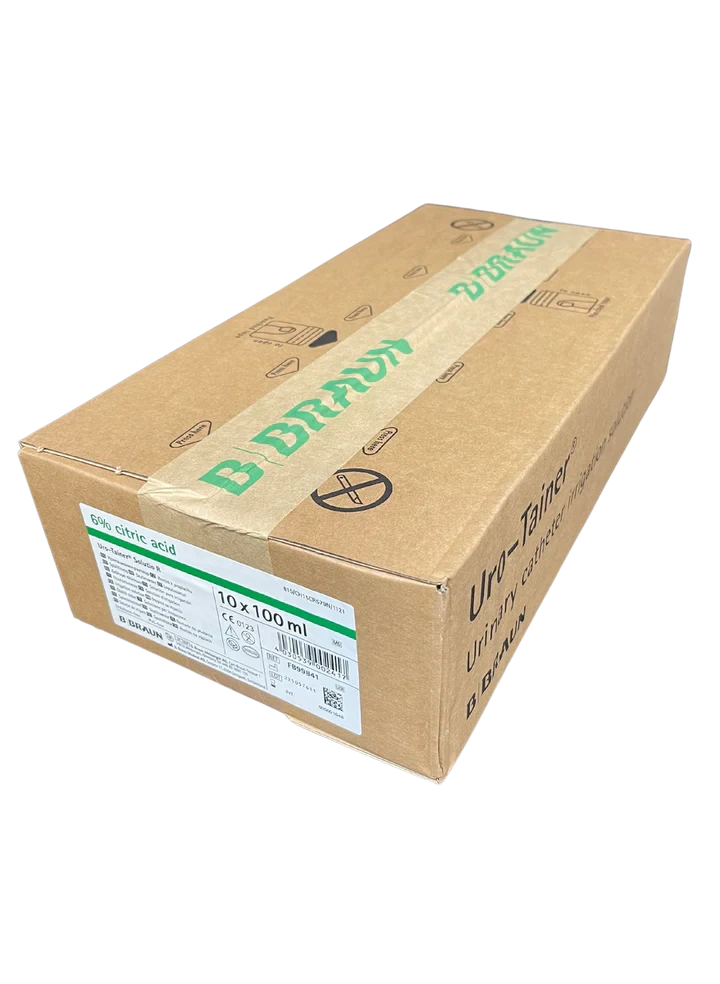 The B. Braun Uro-Tainer Solutio R is specifically designed for various urological interventions such as bladder irrigation, catheterization, and other related procedures. The Citric Acid content maintains the pH balance of the urinary tract, preventing the growth of harmful bacteria and maintaining a healthy environment.