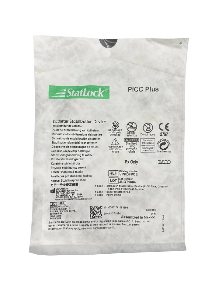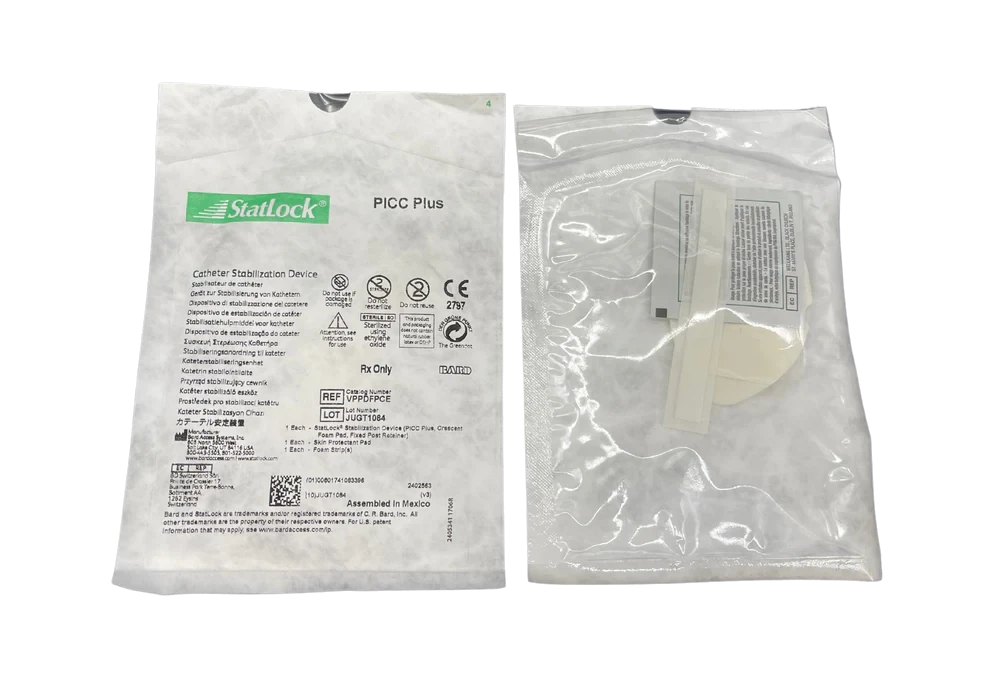 Statlock PICC Plus tubing not included StatLock Stabilization Devices are a more effective alternative to tape in helping improve clinical outcomes, quality of care and economic efficiencies. The StatLock PICC Plus Stabilization Device is a "post and door" design to house the suture wings of virtually all peripherally inserted central catheters(PICCs). Available in adult, pediatric and neonatal sizes. The StatLock PICC Plus Stabilization Device offers great versatility and ease of use Combining the latest in design and engineering technology, StatLock PICC Plus Stabilization Device releasably secures most winged?catheters on the market Just lift the transparent "gull-wings," place catheter wings over the posts, and close Anchor pad available in breathable, nonabsorbent tricot polyester or closed cell foam Sterile and latex-free
