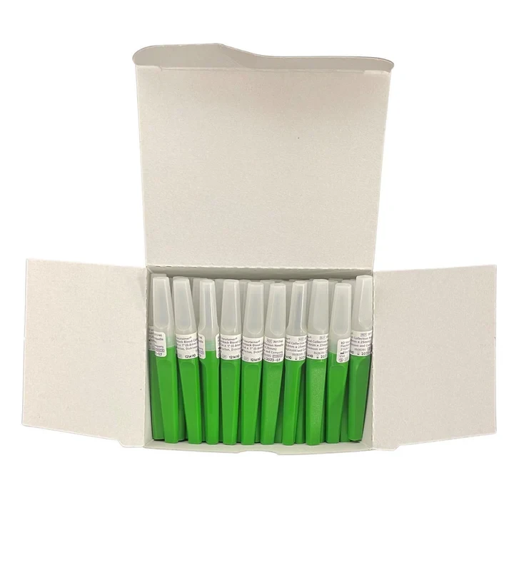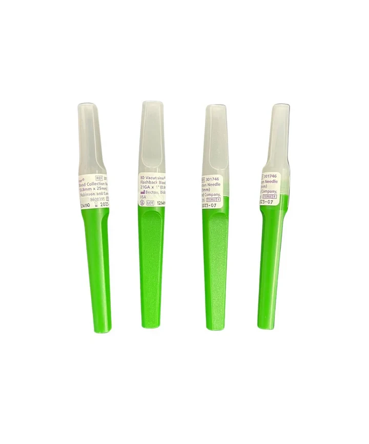 Featuring a 21-gauge size, this needle is versatile and suitable for various blood collection procedures. The needle has a length of 1 inch (25mm), allowing for easy access to veins and minimizing patient discomfort during the collection process. Its compact design ensures precise control and maneuverability, enabling accurate sample collection every time.