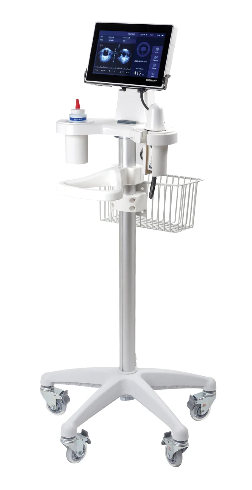 The 3D-Mechanical Sector Transducer captures the bladder in 12 sections and calculates the volume of the bladder based on the images.