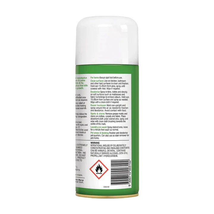 This convenient 200g can of Bosisto's Eucalyptus Spray is perfect for keeping in your medicine cabinet, first aid kit, or handbag. Its compact size ensures that it is easily portable, allowing you to have it on hand whenever you need it. Whether you're at home, at work, or on-the-go, this spray is a reliable companion for your first aid needs.