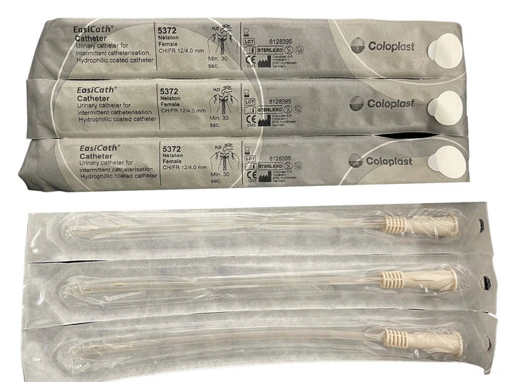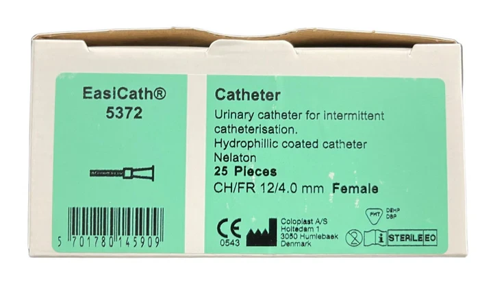 EasiCath Intermittent Catheter Female 12FG EasiCath is a hydrophilic coated intermittent catheter that is ready to use in 30 seconds. EasiCath provides a comfortable catheter that is safe and easy to use. Simply fill the package with water, wait 30 seconds to activate the lubricant, and EasiCath is ready to use. Use warmer water for a softer catheter, and cooler water for a firmer catheter.
