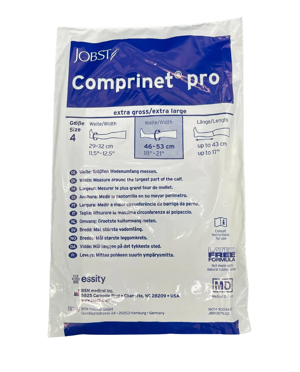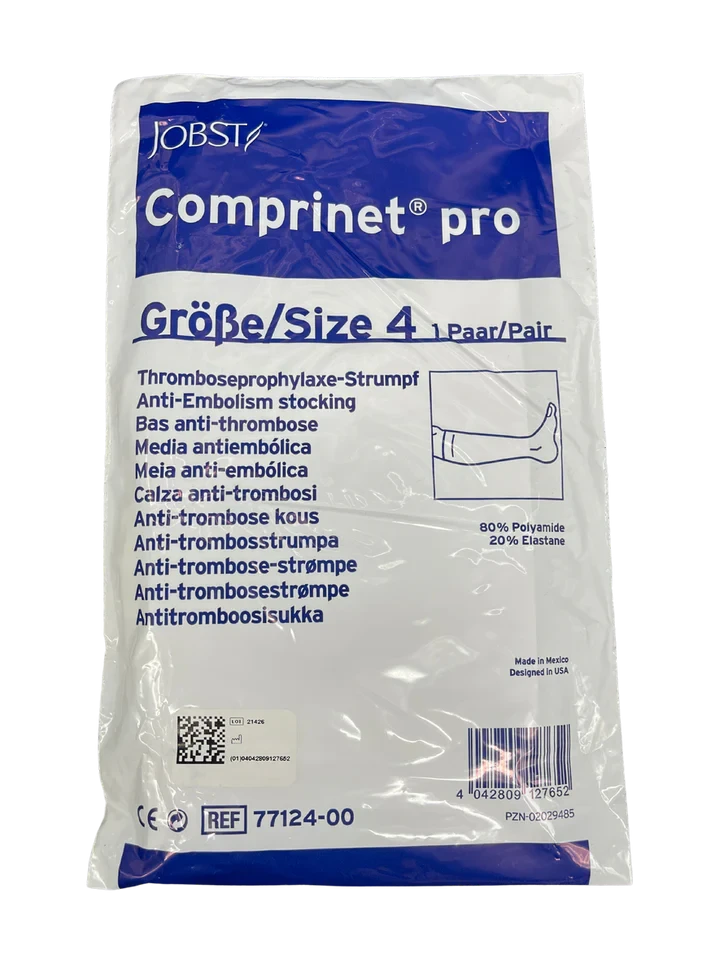 COMPRINET PRO ANT/EMB STOCKING 4/X LGE KNEE HIGH Comprinet pro Anti-Embolic Stockings are intended for use during surgical procedures and on patients confined to bed, as a prophylaxis to prevent the formation of blood clots. They are available in knee high, thigh high and waist high (chaps) and provide 18 mmHg of graduated compression.