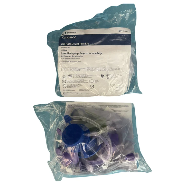 The Covidien Kangaroo Joey Pump 1000mL Feed And Flush Set, Box of 30 (763662) offers a reliable and safe solution for enteral feeding and flushing. Engineered with precision, these Kangaroo Feeding Sets are designed with ENFit connectors, guaranteeing seamless compatibility with the ISO standard 80369-3. This vital feature minimizes the potential for medical device tubing misconnections, thereby enhancing patient safety during enteral feeding procedures.