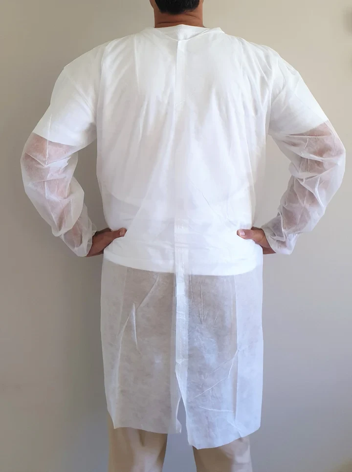 Can be used as Isolation Gown with fasten on back or disposable labcoat with fasten in front