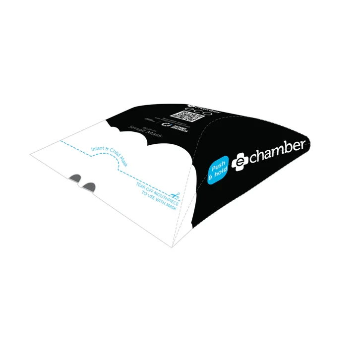design is completely unique to any other flat pack spacer having a tear-off function to reveal an integrated mask. It can be used as a more efficient way of delivering medication especially to children that struggle with the valve. These spacers can fit anywhere but are still an efficient way to take in asthma medication and travel with you wherever you go. A great portable solution for emergency aid use, travel and first aid kits.