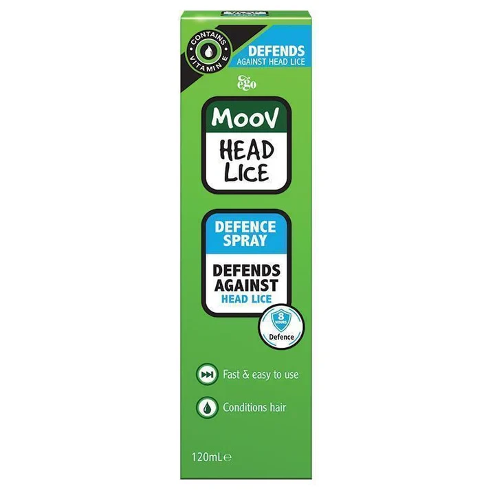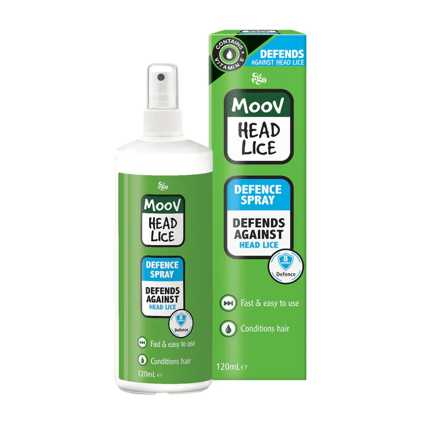 Help protect against head lice with the MOOV Head Lice Defence Spray. Simply spray directly onto hair to provide up to 8 hours protection against head lice by making hair an unpleasant environment for head lice to inhabit. Enriched with Vitamin E, help condition and protect in one easy step.