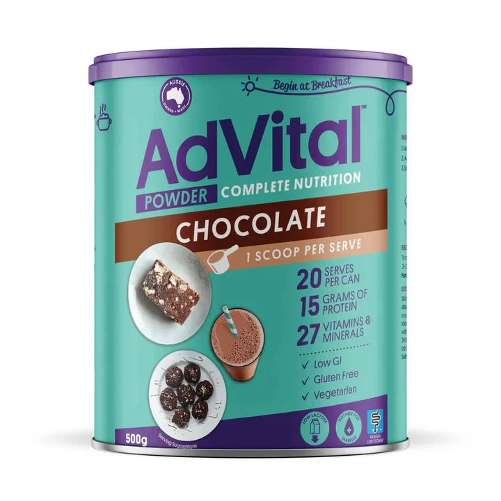 Loaded with 15 grams of protein and 27 vitamins and minerals, AdVital Chocolate, AdVital Vanilla Powder is complete nutrition in just one scoop. Proudly Australian-owned and made, add AdVital Powder to meals, snacks and drinks to support muscle health, immune function and bone health.