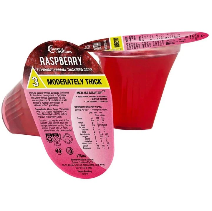 Bursting with flavour, this ready-to-drink raspberry cordial drink is a great way to stay hydrated. cordial drink is thickened for those with swallowing difficulties (dysphagia) and packed in our award-winning patented Dysphagia Cup.