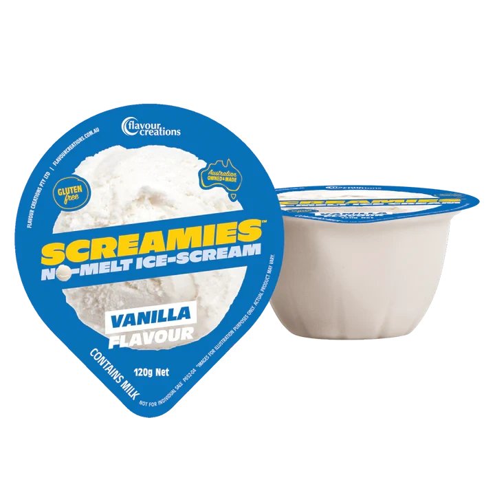 SCREAMIES no-melt vanilla ice scream is velvet-smooth and deliciously creamy. It has that nostalgic home-made taste of authentic vanilla folded into a delicious Australian cream.