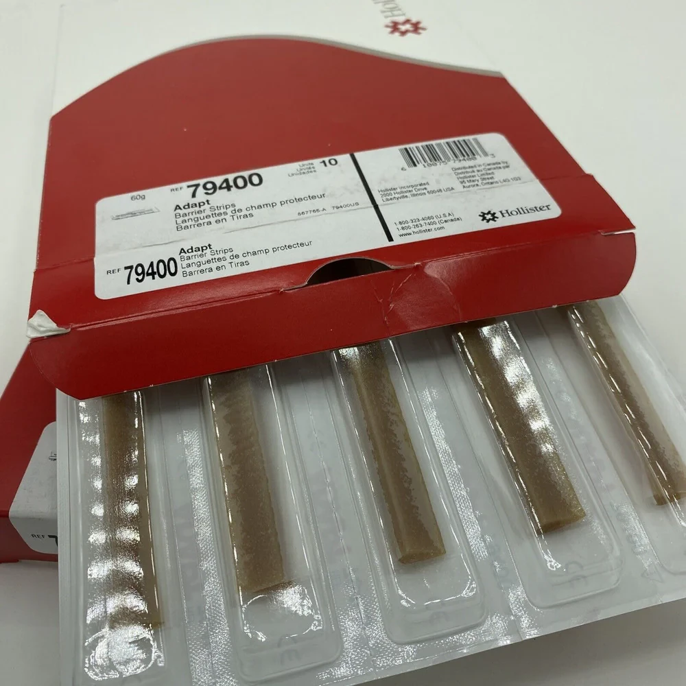 Adapt™ skin barrier strips can be used to fill in or caulk uneven skin contours near the stoma to create a flatter surface and help prevent ostomy drainage from getting under the ostomy barrier. They may be cut to help improve the fit of a pouching system.