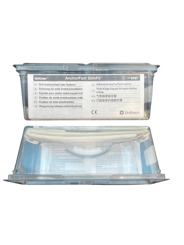 The AnchorFast SlimFit™ oral endotracheal tube fastener provides a convenient means to hold an oral endotracheal (ET) tube in place without the use of adhesive tape and is designed with the intent to accommodate smaller faces.