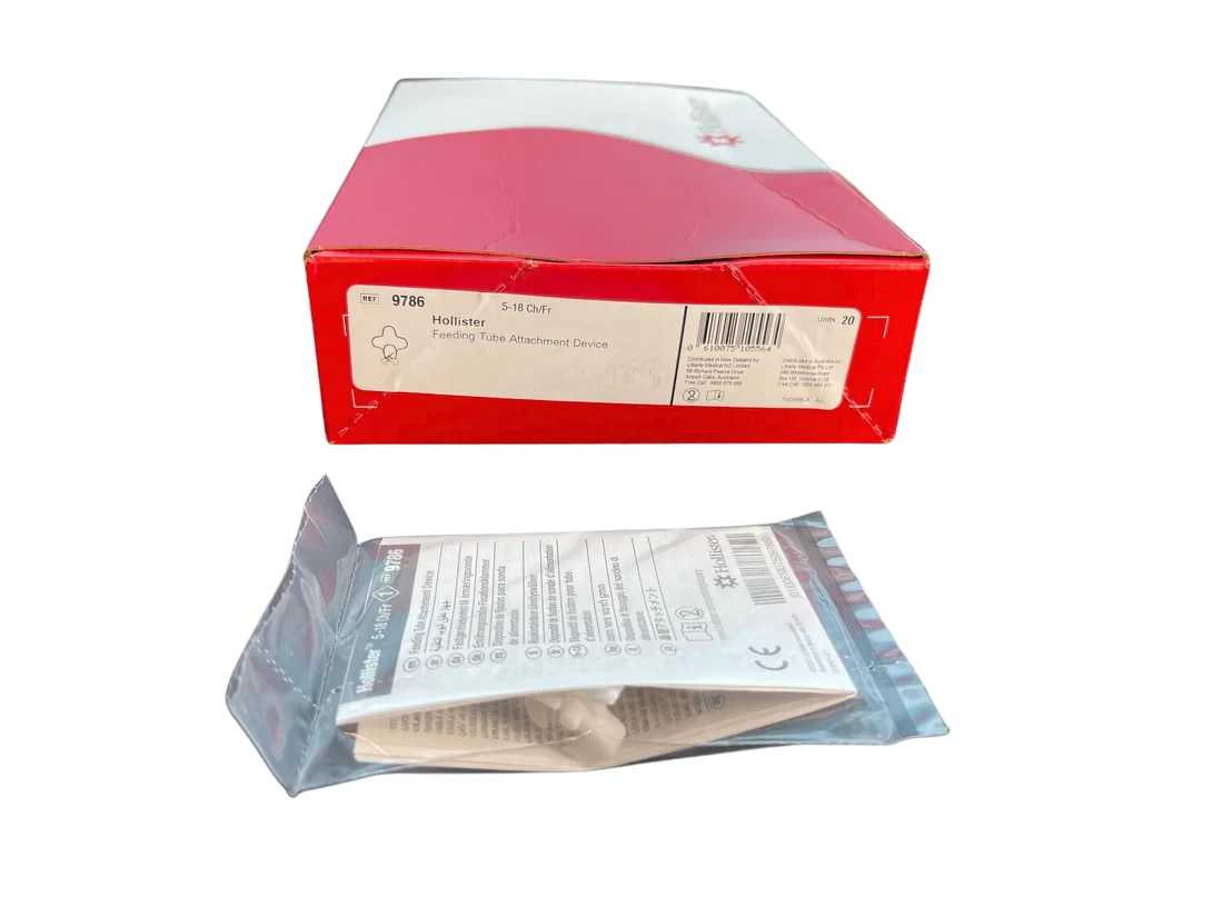 The feeding tube attachment device from Hollister provides an easy-to-use alternative to tape for securing tubes and drains. It features a FlexWear™ skin barrier to help protect the skin and an adjustable clamping mechanism to allow for easy tube positioning and better access for site care.