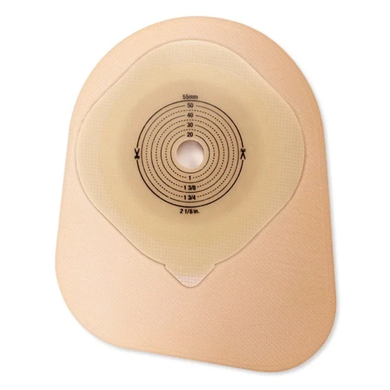 A one-piece, closed pouching system featuring the CeraPlus™ skin barrier with Remois technology* that is infused with ceramide. Ceramide is a natural component of human skin that helps to decrease transepidermal water loss (TEWL) from damaged or eroded skin. It is designed to maintain adhesive properties and features a formulation designed to help protect the skin's natural moisture barrier and help maintain good peristomal skin health. The viewing option allows the stoma and output to be observed clearly when the flap is lifted. The AF300™ filter allows for a slow release and deodorization of gas from the pouch.