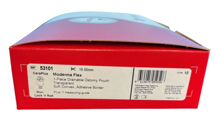 A one-piece, drainable pouching system featuring the CeraPlus™ skin barrier with Remois technology* that is infused with ceramide. Ceramide is a natural component of human skin that helps to decrease transepidermal water loss (TEWL) from damaged or eroded skin. It is designed to maintain adhesive properties and features a formulation designed to help protect the skin's natural moisture barrier and help maintain good peristomal skin health. The integrated Lock 'n Roll™ microseal closure utilizes plastic interlocking fasteners to create a secure closure at the bottom of the pouch. The AF300™ filter allows for a slow release and deodorization of gas from the pouch.