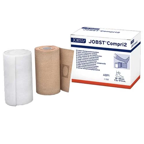Jobst Compri2 Multi Layer Compression Bandage two-layer bandaging systems aid the healing of leg ulcers by the application of compression. Compression is considered to be the cornerstone of leg ulcer therapy. Many studies indicate adequate compression supports venous flow and show significant effects on deep venous hemodynamics, ultimately providing improvements in pain reduction, mobility and general quality of life for the patient.