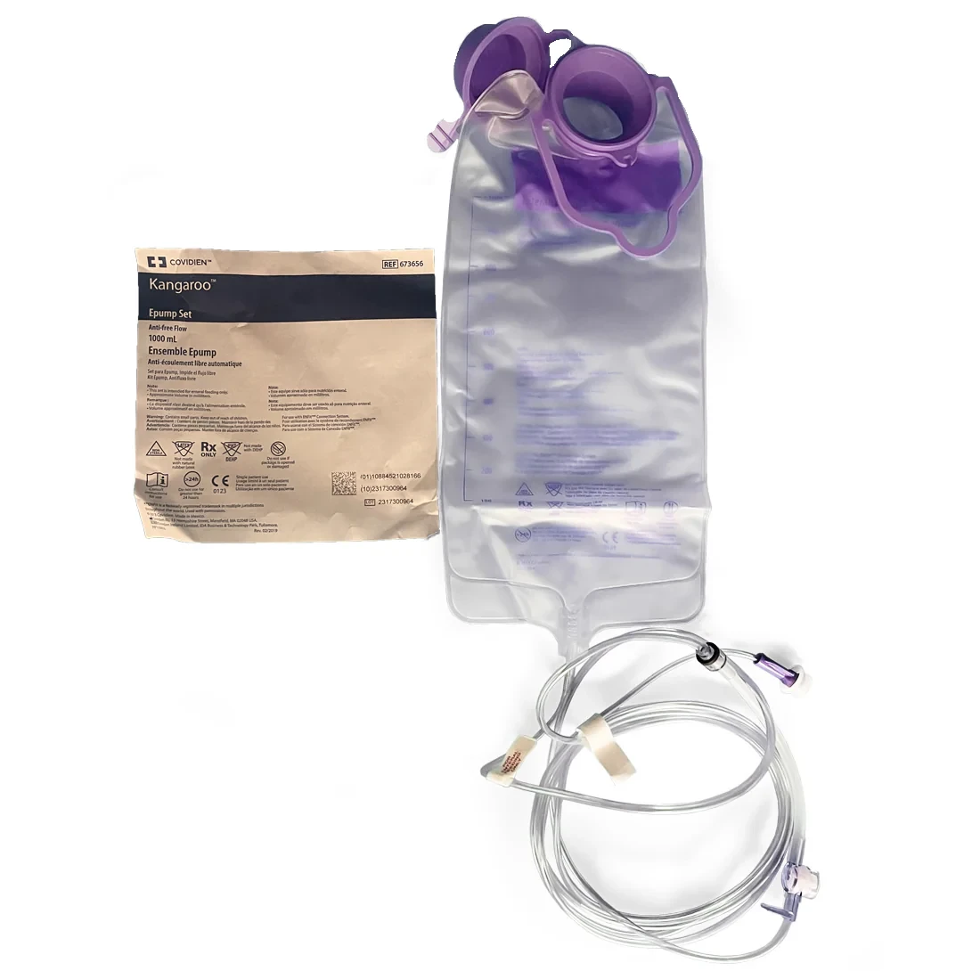 Kangaroo™ Feeding Sets are manufactured with ENFit™ connectors, ensuring compatibility with ISO standard 80369-3 and reducing the risk of medical device tubing misconnections. Kangaroo™ Feeding Sets are DEHP free and include anti-free-flow valves to prevent the backflow of feed in the tube.