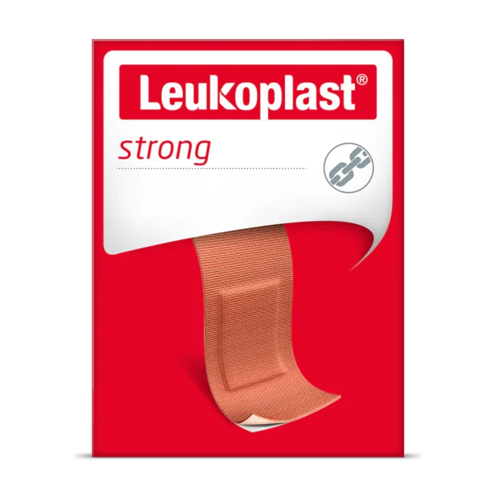 Leukoplast strong is a highly adhesive water repellent bandage for short-term use on minor wounds, cuts and grazes. It’s made from a flexible, breathable fabric and a highly absorbent wound pad.
