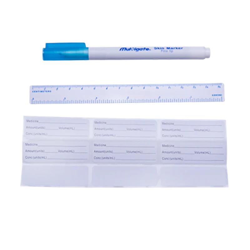 m|devices Surgical Skin Marker Pens are a specific type of pen used to outline/mark the surgical incision site on the skin. The pen is latex free, non‐cytotoxic and has been tested for biological safety in compliance with ISO10993 for skin irritation and sensitization. The marking agent is based on gentian violet, a traditional marking agent which has wide tolerance within the population. Surgical Skin Marker Pens are available in regular and fine tip with ruler and labels.