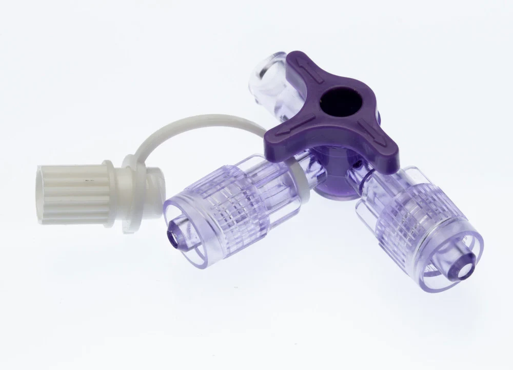 The ENFit 4-way stopcock has a female connector (to connect to an ENFit feeding tube) and two male connectors to connect with ENFit accessories (ENFit syringes, extension sets etc).