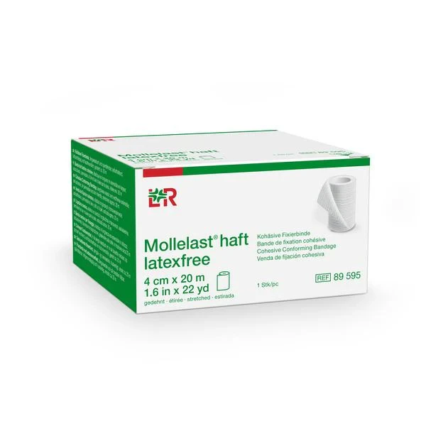 Mollelast haft also is available latex-free, i.e. with a synthetic microcoating (free from natural rubber latex). With the latex-free product, users have as an option a very well-tolerated conforming bandage which has all the tried-and-tested properties of Mollelast haft.