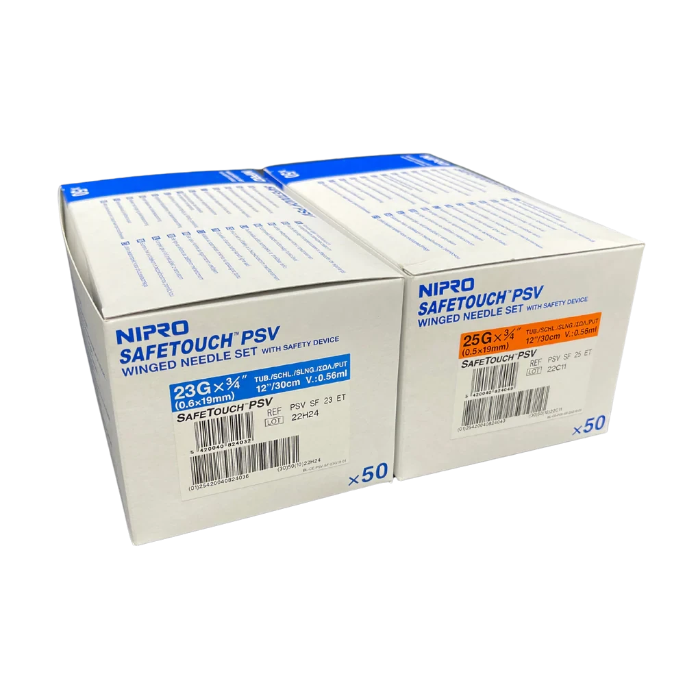 Nipro’s Safetouch winged needle sets (PSV) combine high quality needle performance with an easy-to-activate safety device.