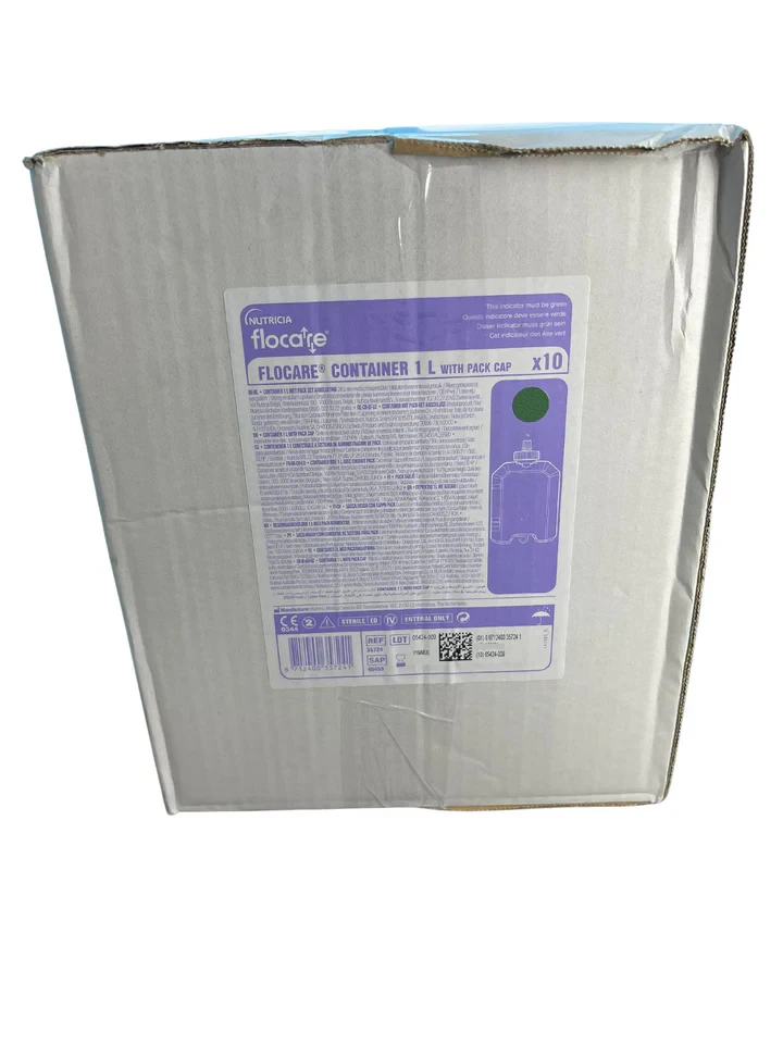 Nutricia Flocare Containers are sterile, collapsible feeding reservoirs available in 0.5L and 1L sizes. Made from durable, low-density polyethylene (LDPE), they are compatible with Flocare Universal and Flocare pack feeding sets. A 1.3L top-fill reservoir option is also included for increased volume and convenience. An empty EVA bag is provided for use with Flocare pack feeding systems, ensuring full compatibility across enteral feeding setups.