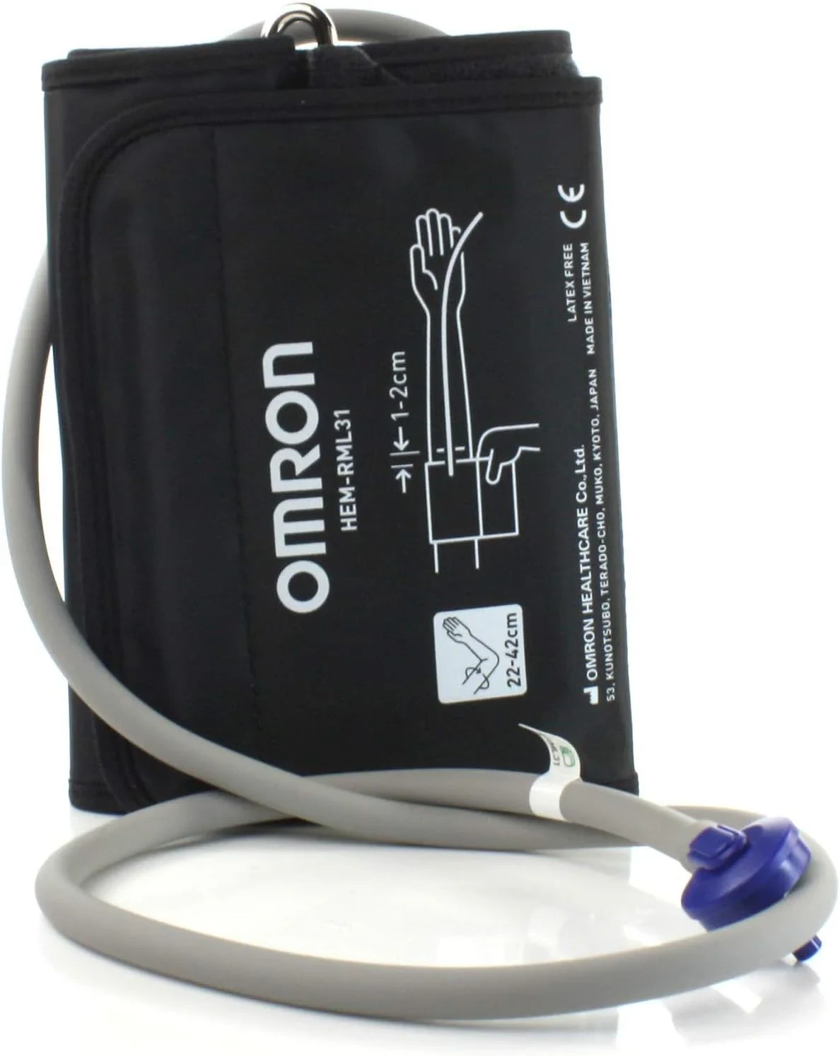 Omron upper arm blood pressure monitor cuff is a wide range soft cuff and cuff is not made with natural rubber latex. Suits arm circumference 22–42cm. Compatible ONLY with the Omron Blood Pressure Models listed below: HEM7121, HEM7130, HEM7322, HEM7280T.