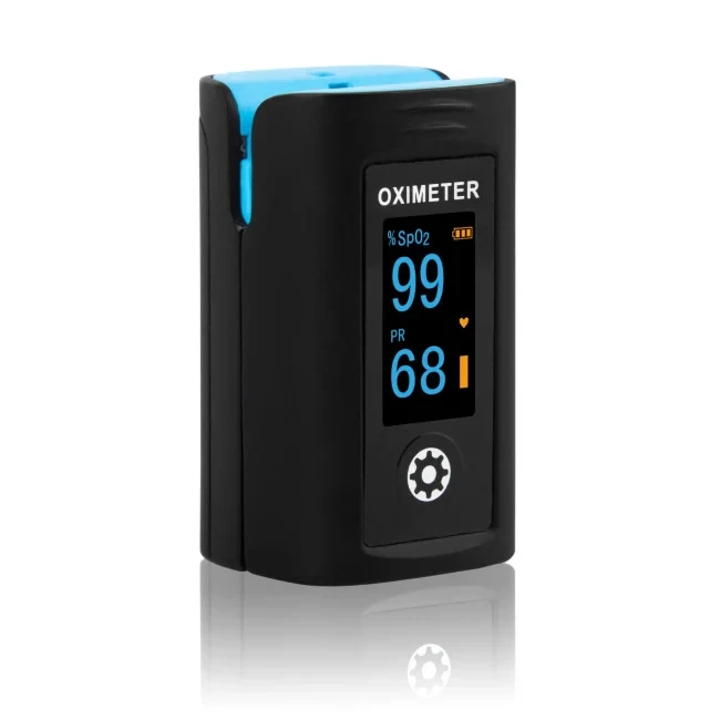 - OLED display of SpO2, PR, PI, pulse bar & waveform