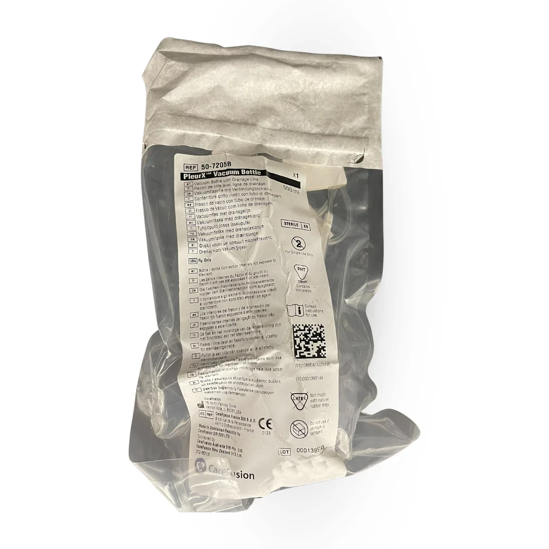 Overall, the PleurX 500mL Vacuum Bottle with Drainage Line (50-7205) plays a vital role in the comprehensive PleurX catheter system. It offers a reliable and convenient solution for the drainage of pleural fluid, supporting patients and caregivers in managing pleural effusions at home. With this system, patients can conveniently undergo the required drainage process, improving their overall quality of life.