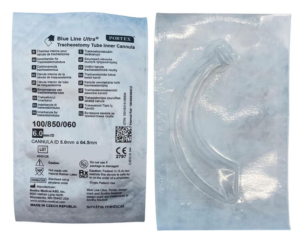 In summary, the Portex Blue Line Ultra Tracheostomy Tube Inner Cannula Size 6 is a high-quality, reusable medical device that provides optimal airflow and ventilation for tracheostomy patients. It offers a safe and comfortable fit, minimizes tissue damage, and is easy to clean and sterilize. With its cost-effectiveness and eco-friendly nature, this Inner Cannula is an indispensable tool for healthcare providers in the management of tracheostomy care.