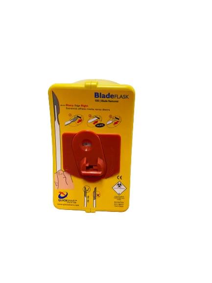 Qlicksmart BladeFLASK provides a simply safer way to remove and contain used scalpel blades. This world-first single-handed scalpel blade remover prevents the dangerous injuries commonly caused by removing blades with fingers, forceps or re-sheathing.