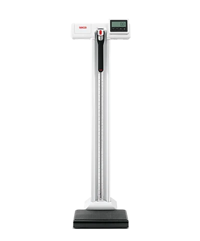 The seca 777 digital column scale with eye-level display is the medical-grade solution for measuring and weighing. It features a tilt-proof full metal platform and robust single peace column, that won’t give way when pushing the keypad. All patients (especially ones affected by obesity) will feel secure on the platform even when stepping on the edge of the base. The scale is easy to move by staff due to the large rubber coated castors and a wide wheelbase.