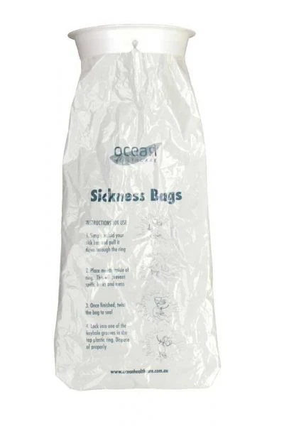The Sickness Bag (Pkt X 3) 5191 - Pack of 6 offers you a reliable, discreet, and hygienic solution to cope with nausea and sickness at any time and place. Don't let discomfort and uneasiness hinder your activities any longer - equip yourself with these trustworthy sickness bags and enjoy worry-free journeys and moments of relief.
