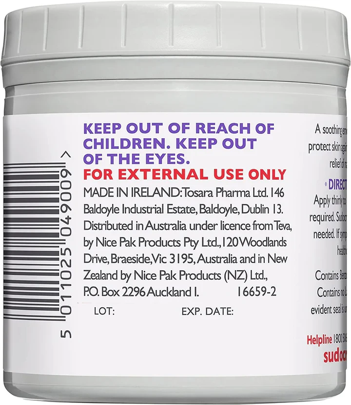 2. Sudocrem soothes damaged skin (nappy rash). It is also ideal for protecting healthy skin that may be exposed to harmful chemicals found in urine and faeces