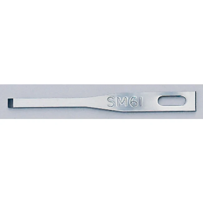 Swann-Morton Scalpel Blade SM61 has a chisel shape and a single bevel version ground on one side only. This blade is designed and used for the treatment of nails in podiatry and chiropody. Swan-Morton scalpel blade is made from stainless steel and available in boxes of 25.