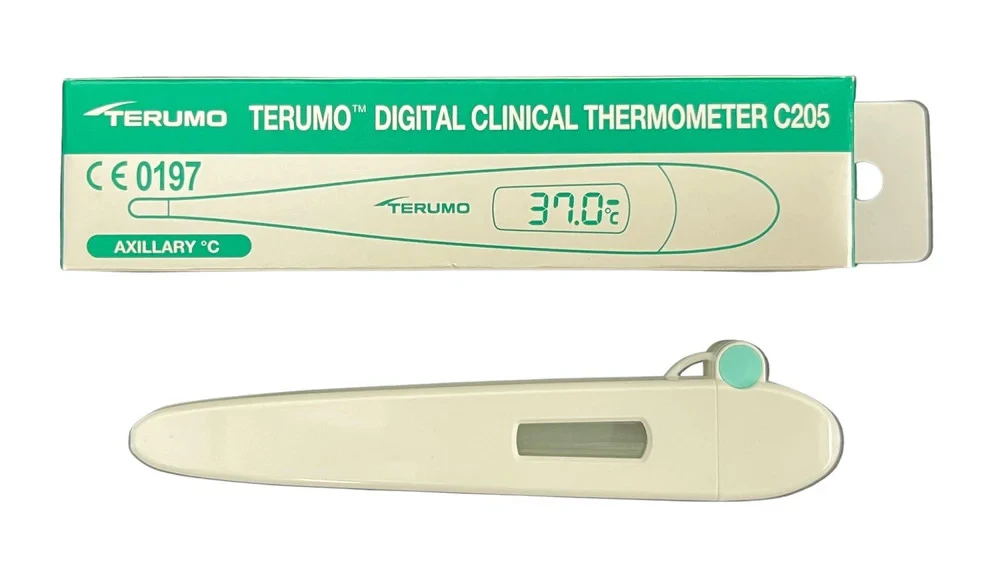 Terumo Digital Clinical Thermometer C205 is a reliable and accurate piece of technology that allows you to easily monitor your body temperature. This digital thermometer is designed for axillary (underarm) use, providing a convenient and non-invasive way of measuring your body's temperature.