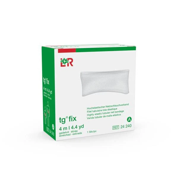 The tg fix bandage is a large-mesh, highly elastic tubular net bandage. It can be used for the easy and time-saving retention of any type of wound dressing, as well as for applying occlusive films. Because it is so flexible it fits all body contours with no bunching, making it comfortable to wear. This net bandage can applied quickly in every situation.
