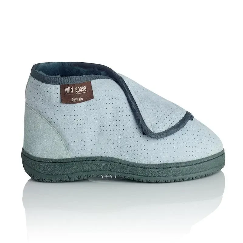 Features an adjustable Velcro opening for easy application and removal, making it ideal for individuals with limited mobility. The snug, cosy design gently cradles the foot, providing comfort, warmth, and pressure relief in aged care and clinical settings.